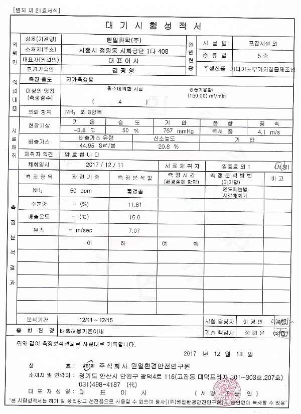 한일화학㈜ 경기도 시흥시 공단1대로 80번길 17(정왕동, 시화공단 1다 408호) 대표번호 : 031-498-3161 이메일: khbae@hanilchem.kr 팩스번호: 031-498-3160